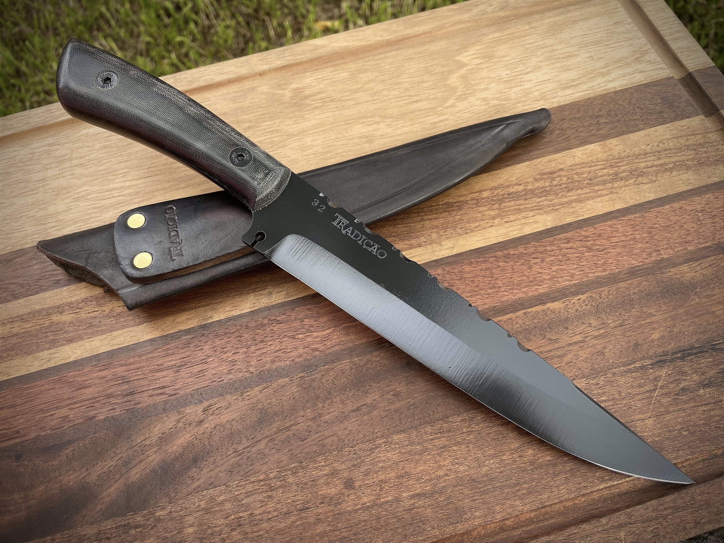 Para quem busca uma faca de churrasco robusta, unica e diferenciada. Cada peça é numerada, o que garante a exclusividade de cada peça. Conta com cabo em micarta preta e acabamento em Cerakote.